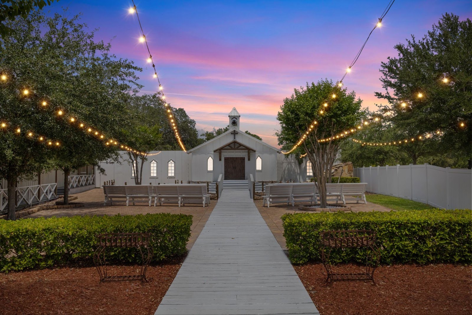 Our charming white Church creates the perfect fairytale backdrop for your outdoor ceremony, combining traditional elegance with natural beauty.