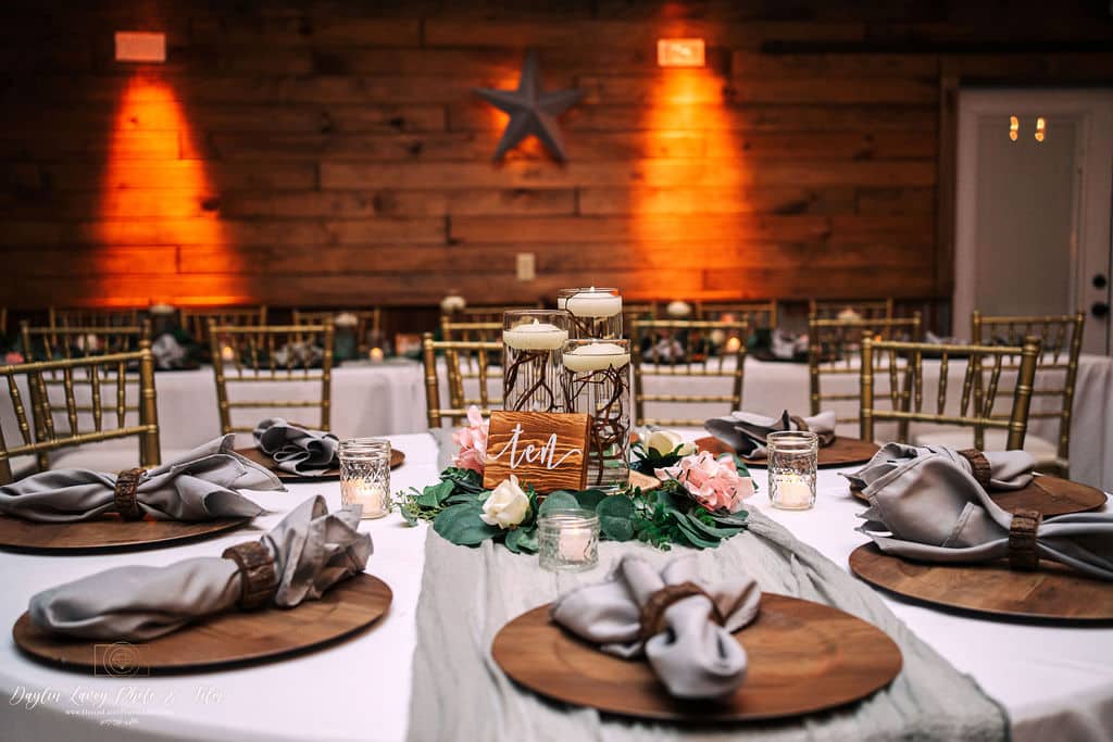 The rustic wagon wheel décor and warm lighting transform this historic-style barn into a sophisticated celebration space that feels both timeless and magical.